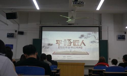 活动中大家集体观看了《平“语”近人——习近平总书记用典》视频。视频以习近平总书记一系列重要讲话中所引用的古代典籍和经典名句为切入点,旨在推动习近平新时代中国特色社会主义思想的生动阐释与广泛传播。大家集中学习了习近平新时代中国特色社会主义思想的新时代特色社会主义思想。观看结束,学院党委副书记刘益星对大会做出了总结,要求广大学生干部认真学习,用习近平新时代中国特色社会主义思想为指导,努力工作,刻苦学习。