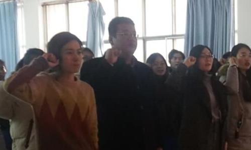 大会首先杨晨老师宣读了预备党员名单,之后,由高会颖老师领誓,全体学生老师进行了入党宣誓,入党积极分子代表,学生党员代表分别进行了发言。最后,刘益星做总结讲话,他重点强调,每位同学要从自身树立党员的形象,严格要求自己,强化“四个意识”,规范自身行为,珍惜来之不易的入党机会,遵守党的规章,争做合格党员。
