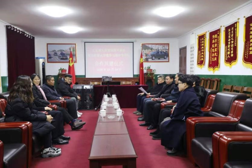 12月24日上午,数学与统计学学院与塔元庄红色传承研学基地举行合作共建仪式,学院党委书记祃海霞等一行5人与塔元庄村委委员李书芳、基地主任陈建民等共同参加了仪式。