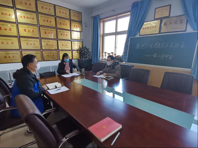 会议由学院党委书记祃海霞主持,院长梁建英、党委副书记刘贵来参加,党委办公室主任王关平列席会议并记录。祃海霞首先代表领导班子作对照检查分析,并提出了整改方案。接下来,祃海霞、梁建英、刘贵来依次发言,汇报2020年的工作成绩,查摆分析不足,列出问题清单和整改措施,并作了深刻的批评和自我批评。最后,与会人员就学院的一流党建品牌、学科建设方向、教学改革创新、学生服务管理、人才队伍建设,特别是十四五期间学院近1/3教师面临退休等问题进行了重点研讨,就如何解决制约学院建设与发展的瓶颈难题进行了深入思考。