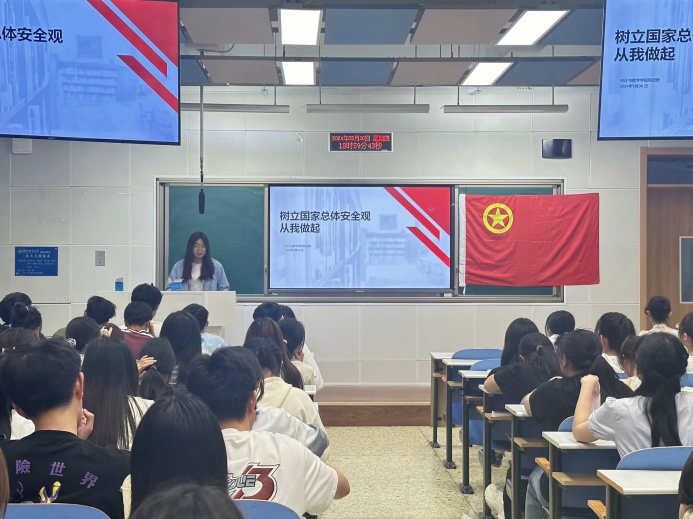 在第二节课“树立总体国家安全观,从我做起”中,团委组织部孙思琪同学为大家详细讲解了国家安全的各个方面,强调了青年一代在维护国家安全中的重要责任,使同学们增强了国家安全意识。