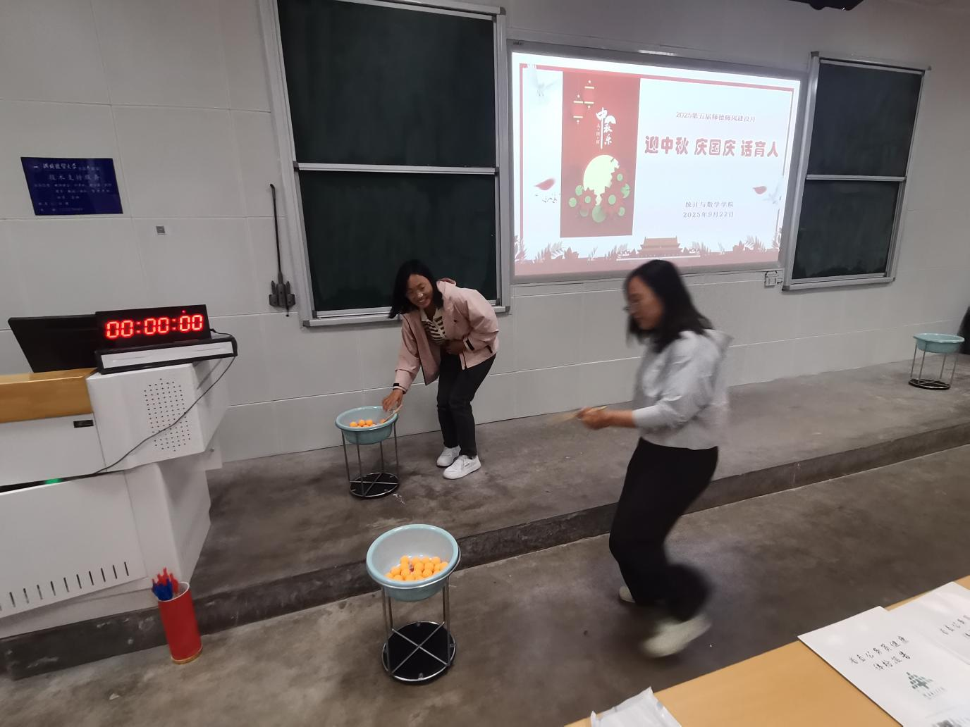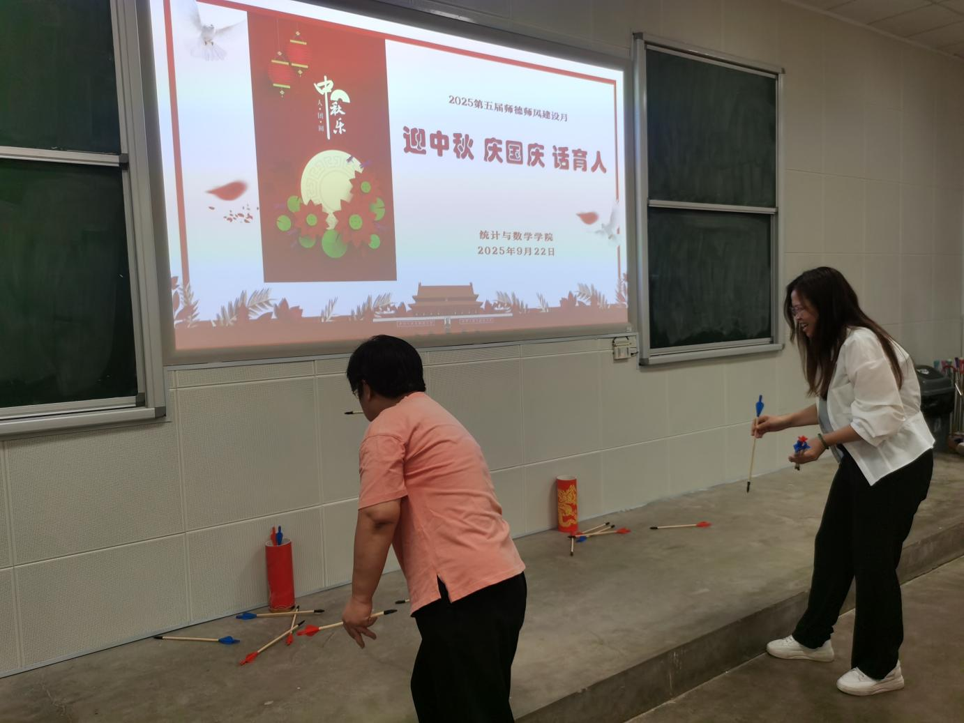 9月22日下午,世界杯体育官方网站全体教职工在二教106教室举办了“迎中秋 庆国庆 话育人”夹乒乓球、投壶等工会活动,这同时也是学院第五届师德师风建设月系列活动之一。