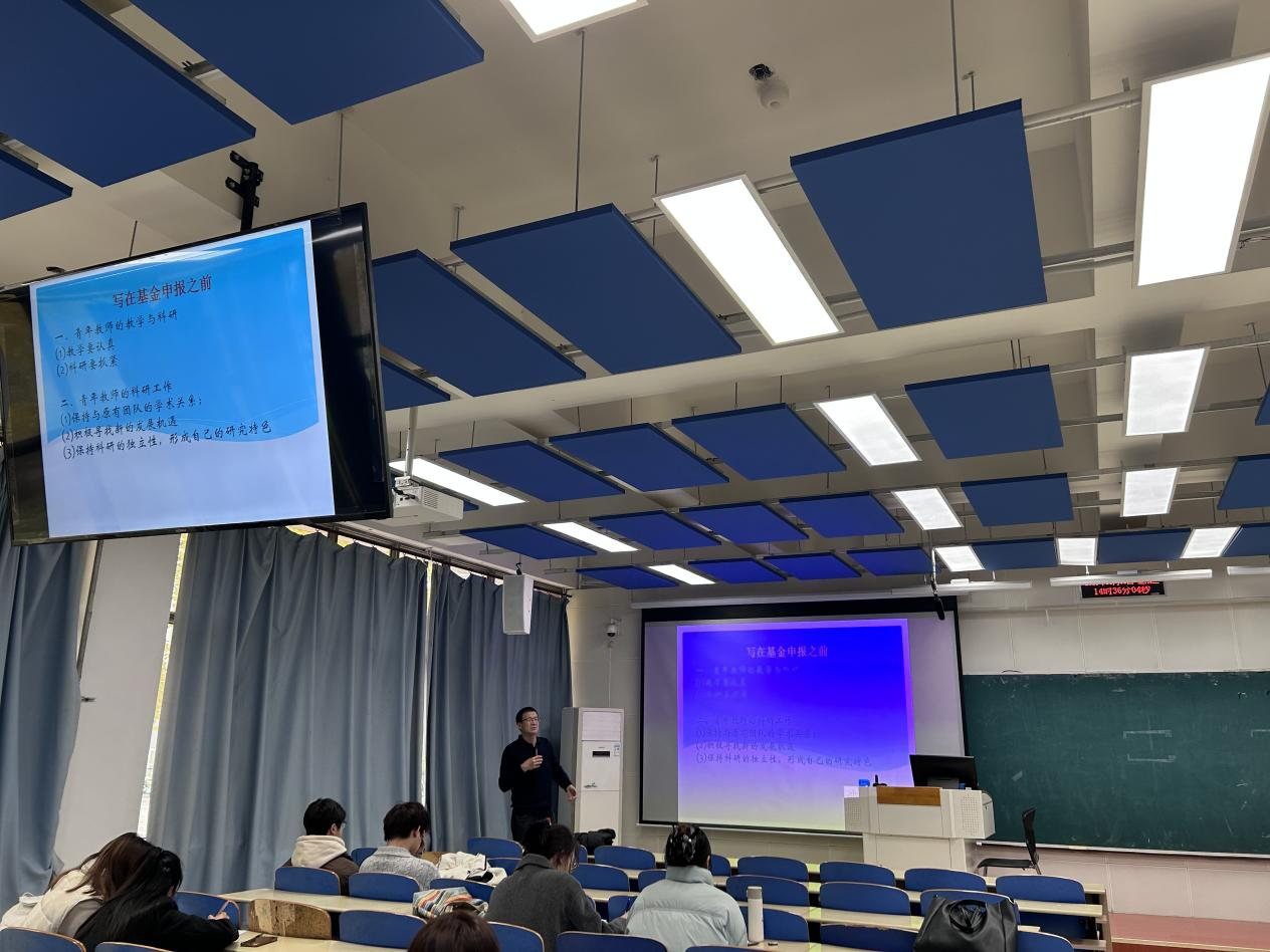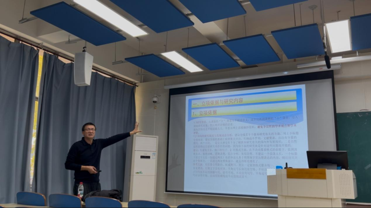 纪奎教授结合自身的项目申报与评审经验,详细梳理了项目申报书各部分的填写规范与常见问题,深入剖析问题根源并提出针对性改进意见。基于扎实的科研积累,纪奎教授从多角度阐释了申报过程中需要关注的关键要点,尤其对题目与关键词的选择、立项依据的撰写逻辑、研究内容的结构设计等重要环节进行了细致解析,并就研究基础与工作条件部分的写作思路作了全面阐述。在探讨选题策略时,纪奎教授进一步指出,高质量的选题应具备学术前沿性,体量适中、聚焦明确,同时避免与课题组其他成员已获资助项目重复,见解深刻、切中实际。