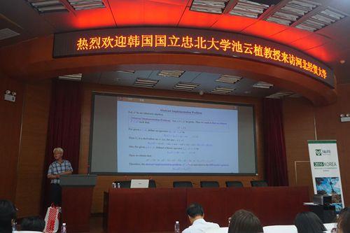 6月13日,数学与统计学学院邀请韩国忠北国立大学池雲植教授,在国际学术报告厅作白噪声理论学术报告。学院师生200余人聆听报告。