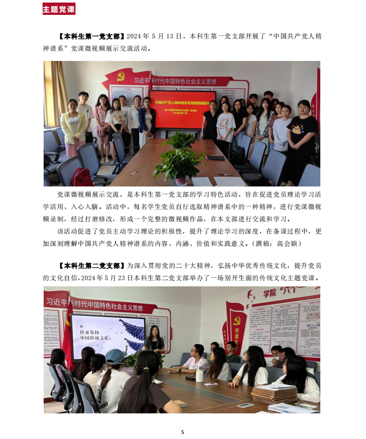 【本科生第一党支部】2024年5月13日,本科生第一党支部开展了“中国共产党人精神谱系”党课微视频展示交流活动。
