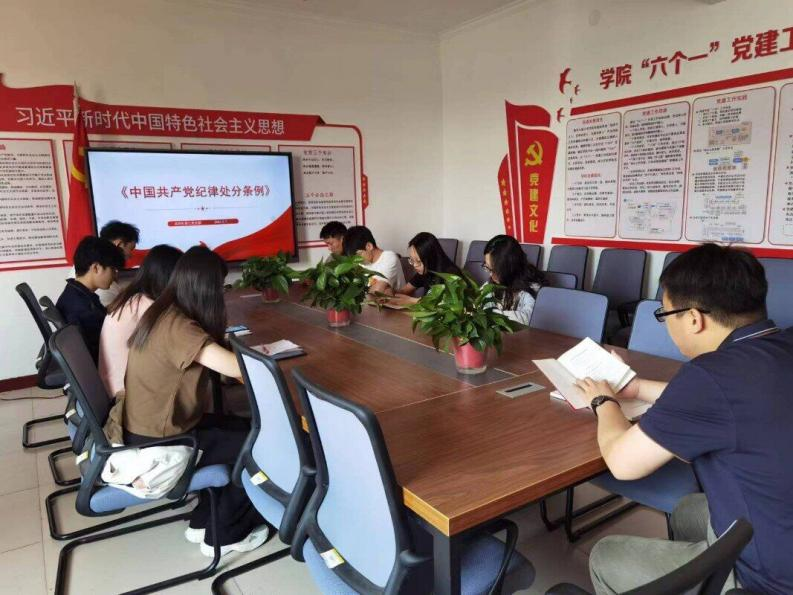 【行政党支部】2024年5月,行政党支部按照学校和学院关于党纪学习教育相关部署,采用集中和分散相结合的形式,系统深入地学习了《中国共产党纪律处分条例》等内容,并通过学习通平台开展了部分专题学习,主要包括条例微课堂(党的政治纪律“十二不准”;六项纪律“负面清单”)、网络里的纪律教育等。5月27日,党支部组织全体工作人员结合具体工作,就学习内容开展了讨论,进一步巩固了学习效果。(撰稿人:张梅)