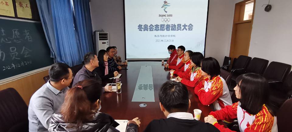 12月24日上午,数学与统计学学院召开冬奥会志愿者动员大会。大会由院党委委员耿会清主持,党委书记祃海霞、院长梁建英、副院长闫亮、全体辅导员以及志愿者同学代表参加。