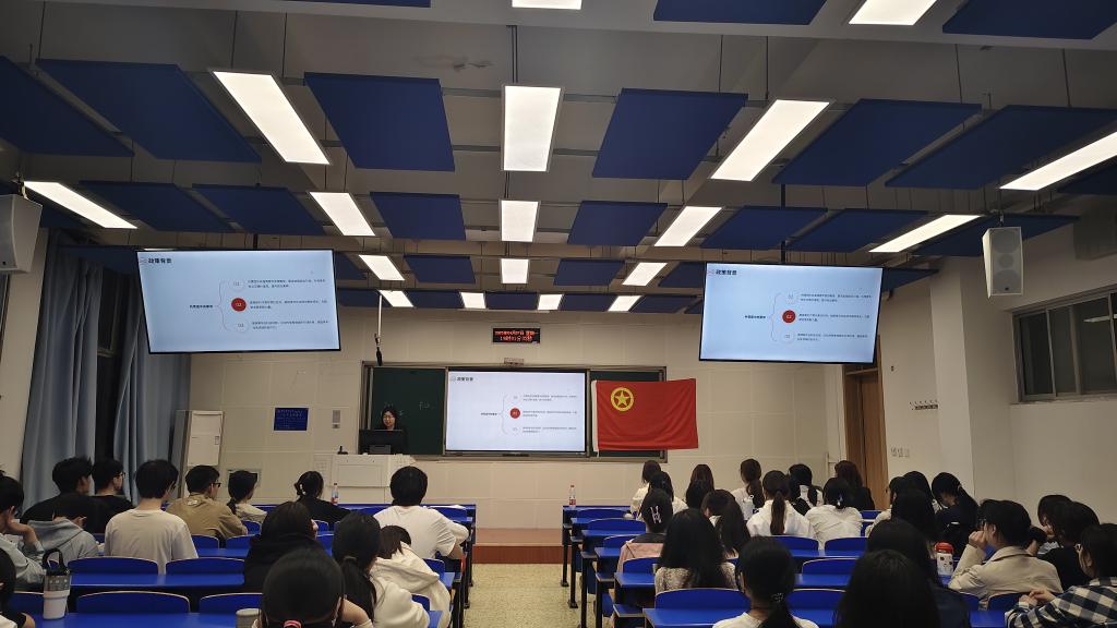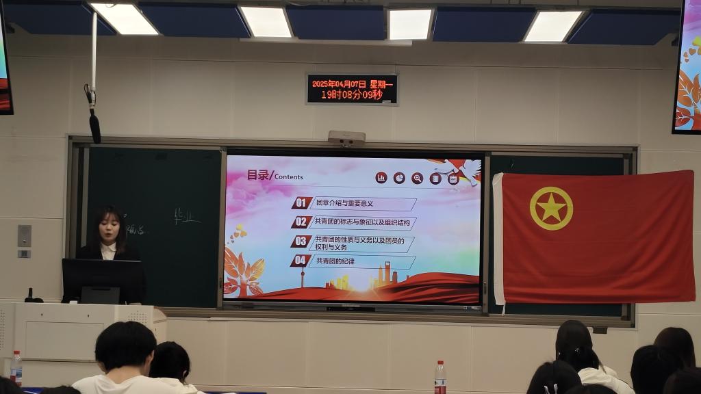 开班仪式结束后,主讲人文思琪紧扣“为党育人、为国育才”主线讲授第一课。她从团章的历史沿革、结构内容、重要意义等方面进行了详细解读。她指出,团章作为共青团的根本大法,明确规定了团的性质、任务、组织结构以及团员的权利与义务,是全体共青团员行动的纲领和准则。通过学习团章,团员青年能够更加深刻地理解共青团的历史使命和时代责任,进一步增强政治认同、思想认同和情感认同。