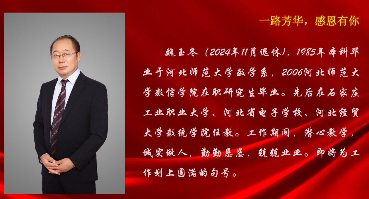 仪式最后,祃海霞做总结讲话。她代表学院党委、全体师生向各位光荣退休的老师致以节日的美好祝福,对大家长期以来的辛勤耕耘和无私奉献表示诚挚的感谢。她希望各位荣休教师能够常回学校看看,一如既往地关心、关注和支持学院建设发展,多提宝贵意见。一日统数人,终生统数人。接好、传好教书育人接力棒,是所有统数人的责任。