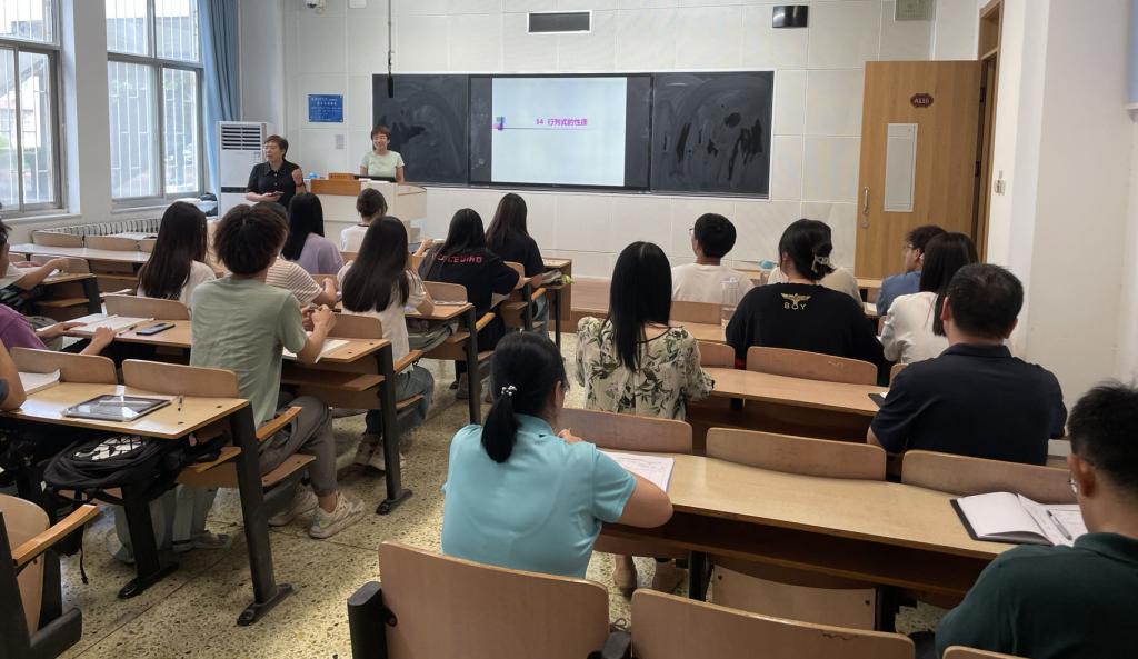 本次教学观摩活动由工程数学教研室王燕博士主讲。王燕老师在今年暑期举办的“河北省高等学校青年教师数学教学竞赛”中荣获特等奖。本次活动,王燕老师以“行列式的计算”为主题,利用行列式的展开定理、行列式的性质和归纳法等多种方法相结合的形式,针对各种不同类型的题目进行了详细讲解。王燕老师语言亲切随和,仪态自然大方,课堂教学思路清晰,教学环节衔接自然,善于启发,充分调动了学生的积极性和主动性,激发了学生的学习兴趣。