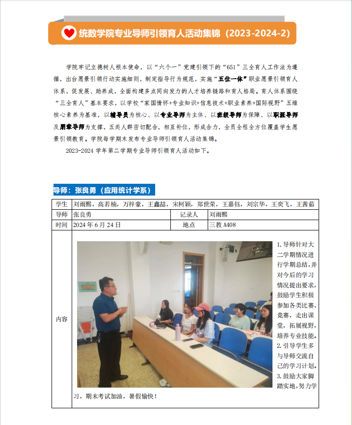世界杯体育官方网站专业导师引领育人活动集锦(2023-2024-2)