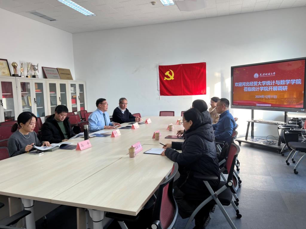 12月11日,世界杯体育官方网站党委书记祃海霞、院长闫亮、副书记路荣、副院长王玲书一行赴天津财经大学统计学院开展调研交流,天津财经大学统计学院党委书记王健、院长杨贵军、纪检书记李强出席本次座谈交流。
