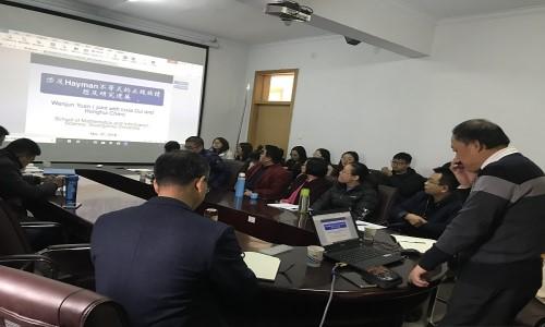 11月7日上午,广州大学博士生导师袁文俊教授应数学与统计学学院邀请,在学院会议室作题为《涉及Hayman不等式的正规族猜想与研究进展》的学术报告。报告会由学院院长梁建英主持,相关专业教师和研究生30余人参加。