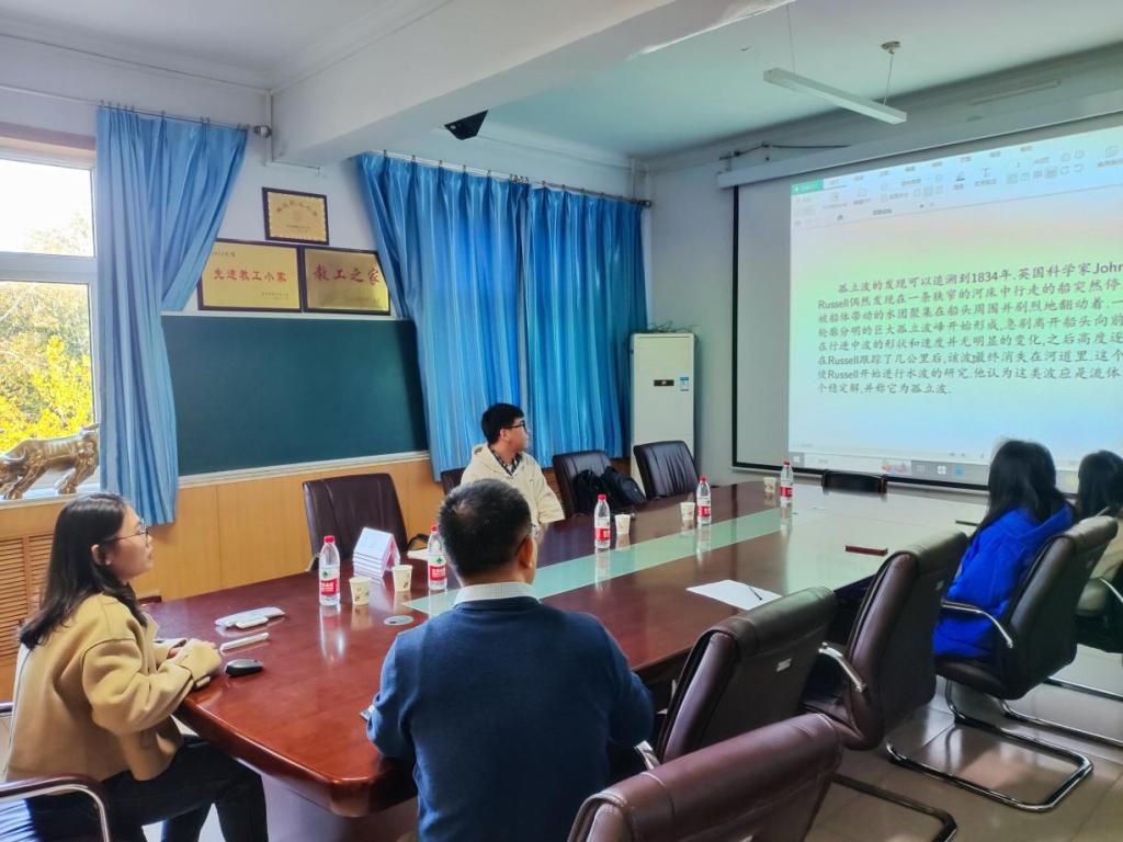 冯连莉老师首先介绍了可积系统与孤立子理论的研究背景。非线性微分方程可积性的研究是可积系统与孤立子理论中的核心内容。在可积系统理论中,求解非线性微分方程的孤子解并研究它们的性质是很重要的研究方向。同时详细地介绍了构造孤子解的主要方法,包括反散射变换方法和达布变换方法。其次,分别介绍了如何用达布变换方法研究非局部二分量复修正KdV方程和广义二分量SS方程的孤子解,并作图分析这些解的动态性。最后,介绍了这一研究领域的发展趋势与研究展望,并同与会师生就报告相关内容进行了探讨。