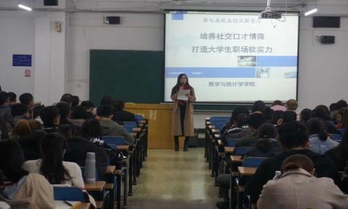 11月20日晚7点,数学与统计学学院在北三教C509教室举办了“培养社交口才情商,打造大学生职场软实力”主题讲座,学院团委书记杨晨老师和全体班干部、学生会成员参加。