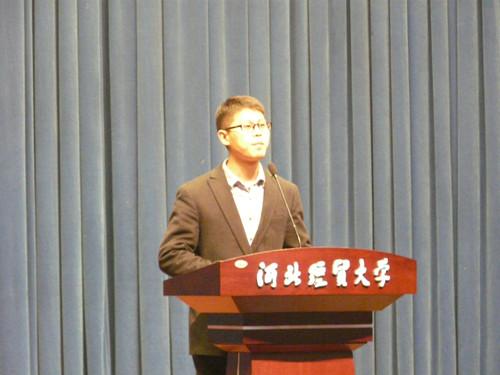 报告会上,巡讲团6名成员通过自己的亲身经历,分别向大家介绍了他们真实、典型的就业、创业历程。“宜家宜厨”生鲜连锁超市总经理张磊,卫校刚毕业后回家乡卖菜,顶着各种讥讽、克服各种艰辛,顽强地走自己的路、做自己的事业,取得了骄人的业绩,他平凡而又激人奋进的创业历程耐人寻味;石家庄东盛装饰公司创始人王绍华的故事,让我们认识了这位外表纤秀、内心坚韧的女子,是如何在人生道路上拼搏创业、回报社会的,她的良好品德给所有就业创业道路上的人树立了榜样;乐返网创始人彭少强,在大学期间便崭露锋芒,成为校园创业的典型代表,在互联网购物异常发达的今天,他善于踏浪、勇于搏击,使他的创业更加坚实、更富前景;“三支一扶”教师李源源,这样一位看似柔弱的女孩,扎根山区支教6年,在工作中迸发出强大的正能量,让大家更清晰地认识到“三支一扶”工作的深刻意义;“七色虹”墙体装饰设计工作室创始人刘振杰,带领“七色虹”团队,用初生牛犊不怕虎的闯劲和压不断、扯不烂的韧劲,矢志不渝、大胆实践,实现了将自己的专业与创业的完美结合;唐山市丰南区漠尚客骆驼养殖专业合作社理事长郑林林,这个唐山姑娘当年将大批骆驼带回平原喂养的做法,曾经被很多人看作天真,但相信科学的她创造条件,实现了看似不可能完成的事情,并带领乡亲们勤劳致富,成为“第一个吃螃蟹的人”。
