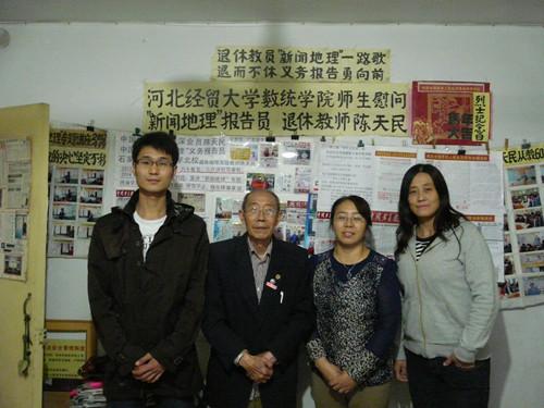 数统学院党总支副书记赵春果、张梅老师及学生代表前往“人生导师”、中国地理学会资深会员87岁高龄的陈天民家中慰问。陈天民退休后,经常以义务报告员的身份举办关于《钓鱼岛是中国固有领土》的专项报告,于2011年被世界杯体育官方网站聘请为大学生的“人生导师”。