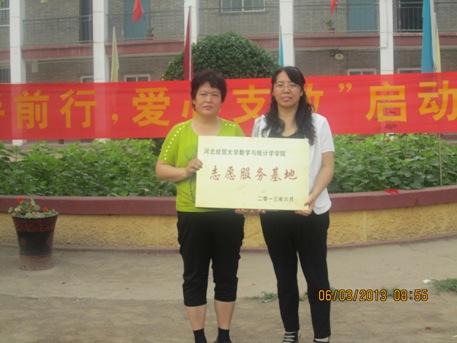 2013年6月3日上午,世界杯官网“携手前行,爱心支教”启动仪式在五七路联合子弟小学隆重举行。学院党总支副书记赵春果、五七路联合子弟小学校长田翠蕊、数统学院团总支书记张浩、数统学院青年志愿者代表以及五七路联合子弟小学全体学生等参加了仪式。