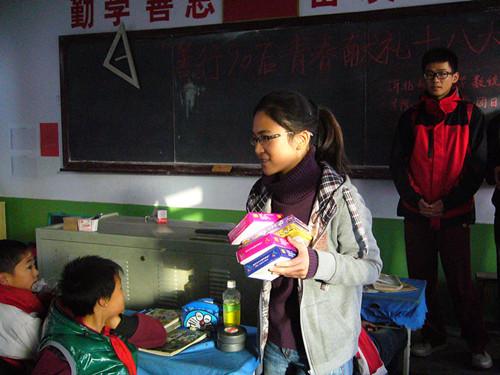 向孩子们赠送跳棋