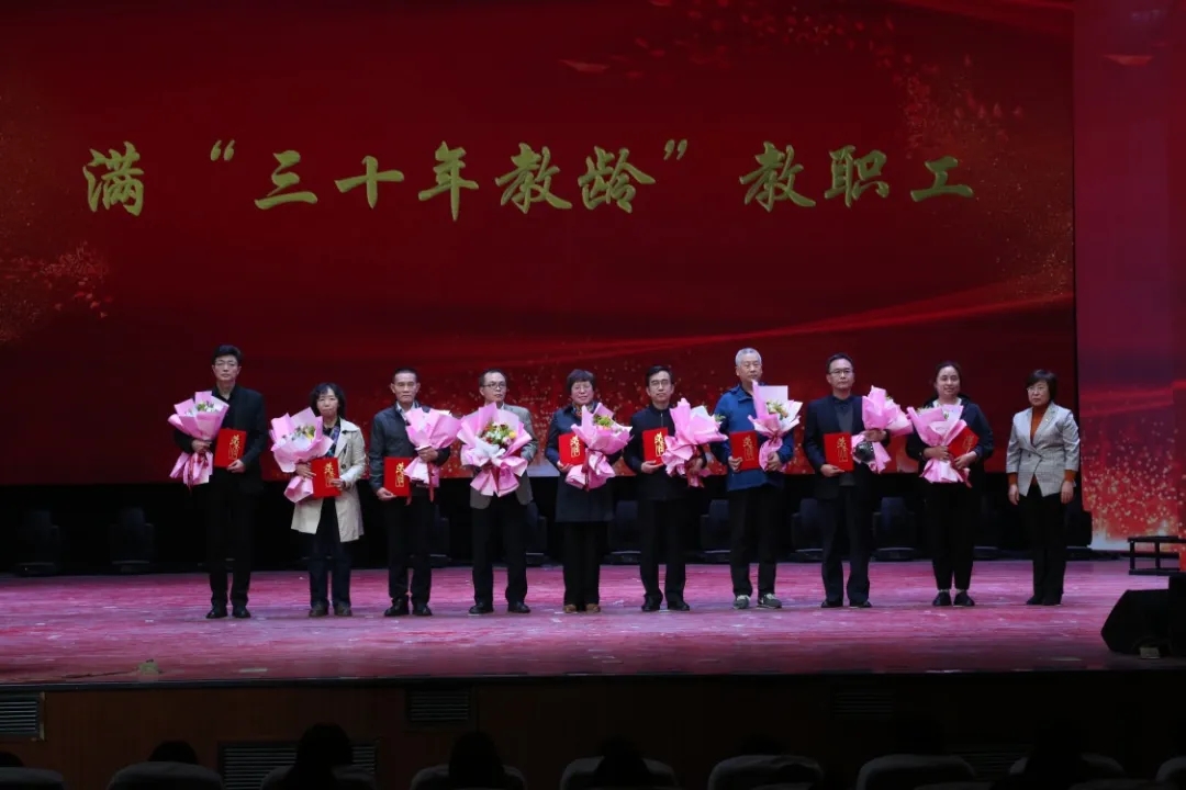 表彰大会上,学院荣获2019年学生工作先进单位,2019届毕业生就业先进集体,高会颖老师荣获“优秀共产党员”称号,杨晨老师荣获“河北省德育先进个人”,李志波、王艳老师荣获“疫情防控工作先进个人”称号,王亚辉、甄永红、贾美枝荣获满“三十年教龄”教职工称号。