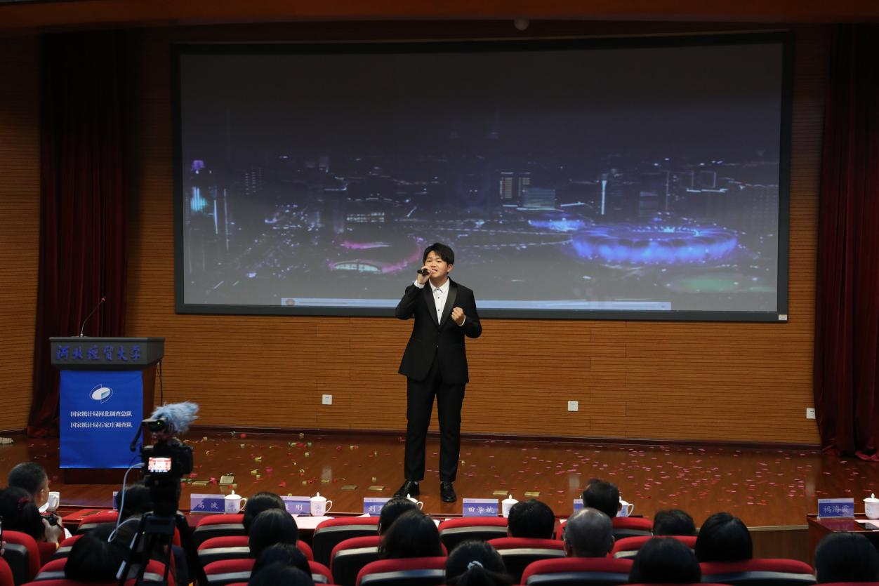 现场活动丰富多彩,气氛热烈。国家统计局河北调查总队党组成员、总统计师王新军主讲《统计调查在您身边》统计公开课,国家统计局石家庄调查队表演了统计执法小品《不懂法真可怕》,世界杯体育官方网站艺术学院学生梁嘉磬为大家带来精彩独唱《新的天地》,接下来的大学生就业意愿调查数据展示和游戏互动活动再次把气氛推向高潮。