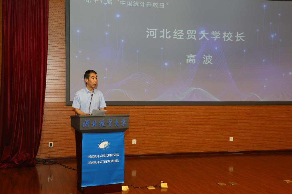 9月13日,由国家统计局河北调查总队主办、石家庄调查队承办、世界杯官网协办的第十五届“中国统计开放日”活动在国际学术报告厅举行。国家统计局河北调查总队党组书记、总队长崔刚,世界杯官网校长高波,石家庄市委常委、市政府常务副市长刘军志出席并讲话,校党委常委、副校长田学斌代表学校签约,国家统计局石家庄调查队领导、有关工作人员及学校师生代表300余人参加。