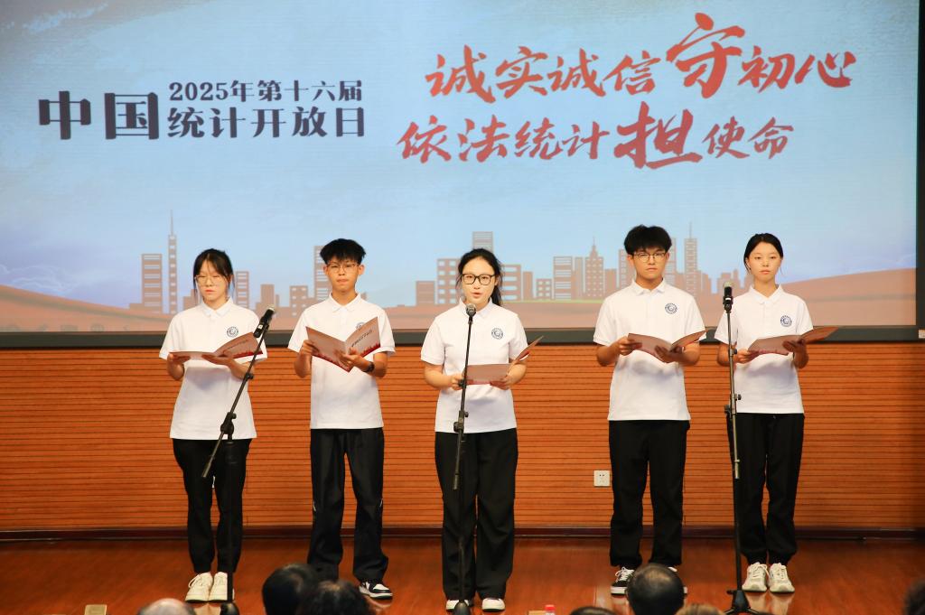 活动紧扣“诚实诚信守初心,依法统计担使命”主题,立足统计宣传与青年教育相结合的特点,精心设置了主题倡议、统计公开课、成果展示与互动咨询等多个环节。启动仪式上,世界杯体育官方网站学生代表宣读了《诚信统计·青春誓言》倡议书,展现了新时代青年坚守数据真实、护卫数据安全的坚定决心。