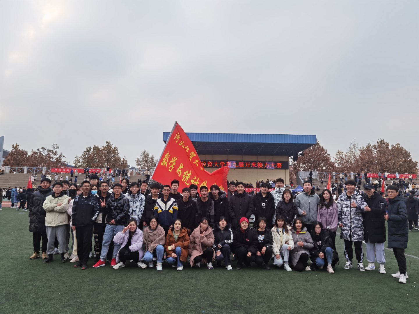 为提高学生体育锻炼的意识和顽强拼搏的精神,世界杯官网于11月28日下午1:30在东操场举办了万米接力大赛,数统学院的25名运动员和啦啦队与来自其他14个学院的运动员和啦啦队参加了此次比赛。