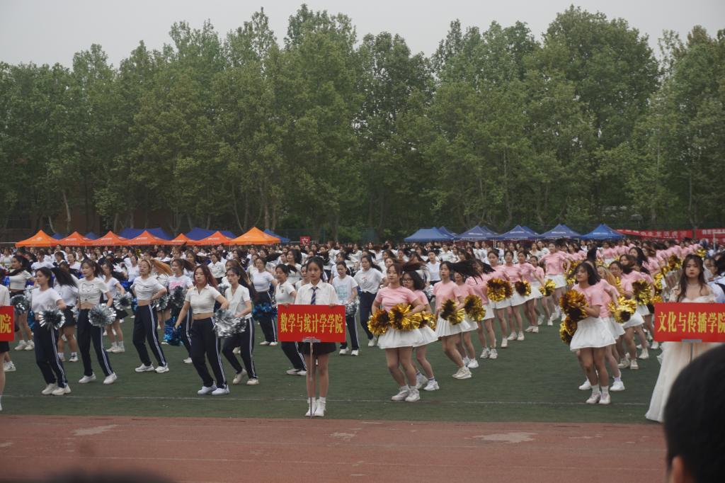 首先,由各学院展示方阵队形,数统学院方阵英姿飒爽、徐徐走来,这是一个积极向上、朝气蓬勃的队伍。正如他们的口号“青春似火,超越自我,激情澎湃,永不言败”,参赛同学必会拼尽全力,在赛场上展现英姿,弘扬体育精神。接着,来自世界杯官网的韩星雨同学代表运动员做宣誓:服从裁判、尊重对手、团结协作、赛出水平、赛出风格,以饱满的热情对待每一场赛事,弘扬坚韧不拔的体育精神。最后,由各学院组织而成的啦啦操队进行汇报表演,数统学子身着色彩鲜艳的服装,脚步整齐划一,在音乐的伴随下挥舞着啦啦花球,场面瞬间变得热闹非凡。