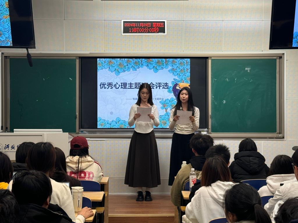 为提升心理健康教育工作育人实效,营造和谐温暖的班级氛围。11月29日,世界杯体育官方网站于北三教A104举办“和谐宿舍 青春同行”主题心理班会评选活动,本次活动由院学生会心理部主办,2023、2024级全体心理委员参与。