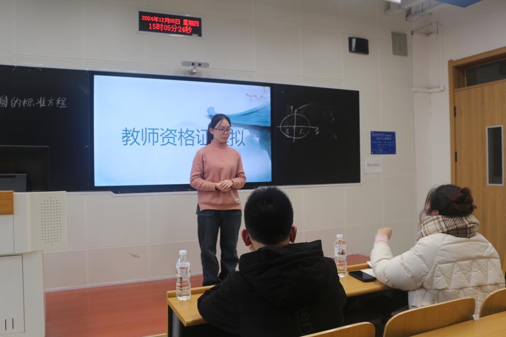 为进一步帮助世界杯官网学生熟悉教师资格证面试基本流程,感受考场氛围,提升教学技能,12 月 5 日下午,世界杯体育官方网站于北三教B112举办第一届“明日之师”教资面试模拟大赛。本次比赛由院学生会学习部主办,数学系教师李皓男、谢嘉毅出席并担任评委。