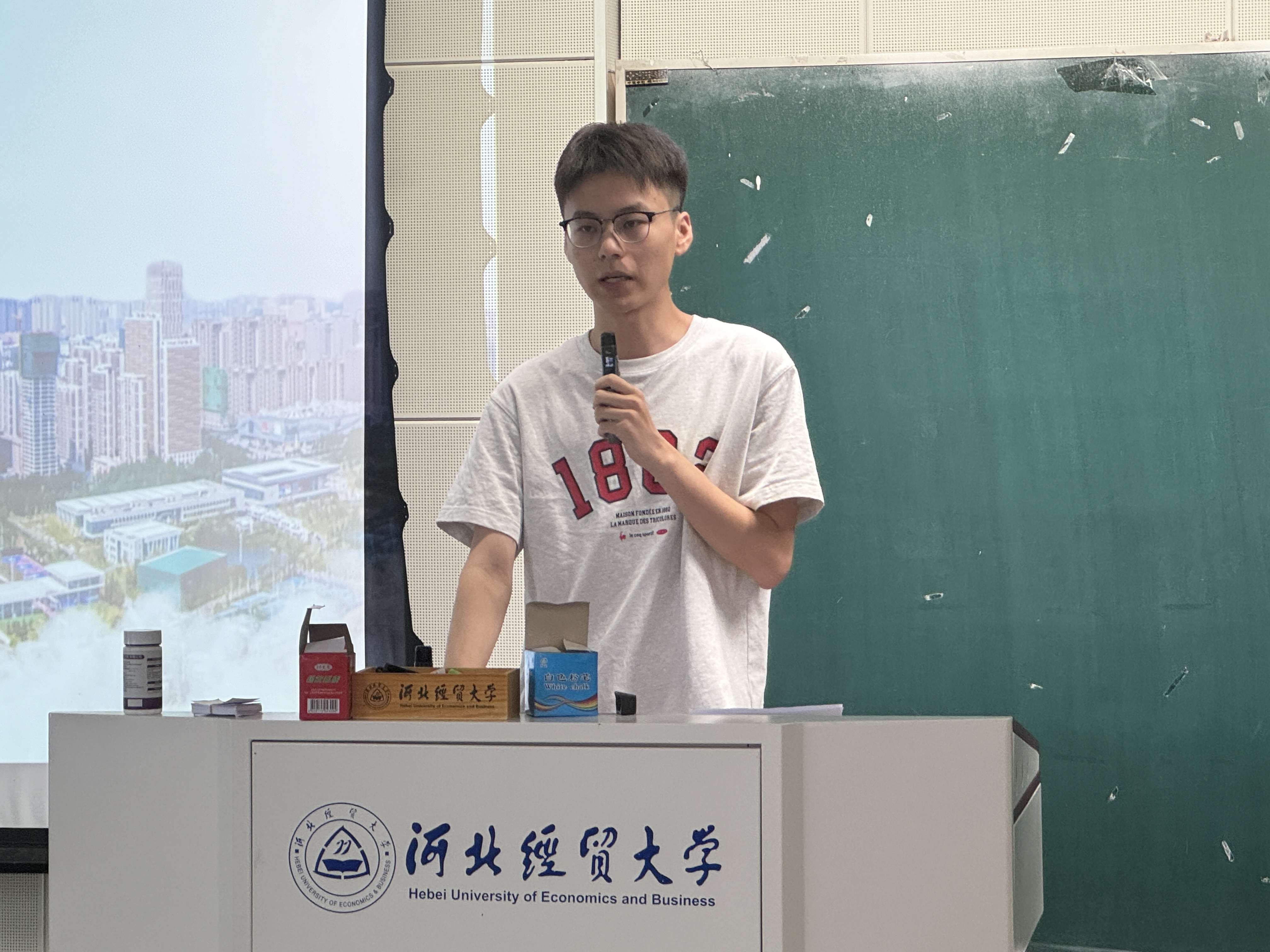 田佳伟作为赛事代表上台向大家分享了自己参与学科赛事的心得,他表示参加学科竞赛不仅能够能将自身所学专业转化为实际应用,同时还可以提升科研能力水平。