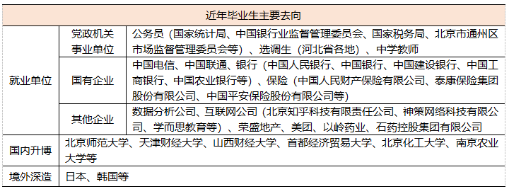 近几年,学院毕业研究生考取博士研究生、国家公务员、选调生、国有银行等比例逐年攀升,就业前景广阔。