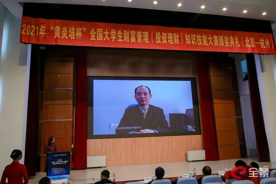 12月8日上午,2021年“黄炎培杯”全国大学生财富管理(投资理财)知识技能大赛颁奖典礼以北京——杭州同步、线上与线下联动的方式隆重举行,29500多人通过全景网直播平台在线参加了闭幕式暨颁奖典礼。