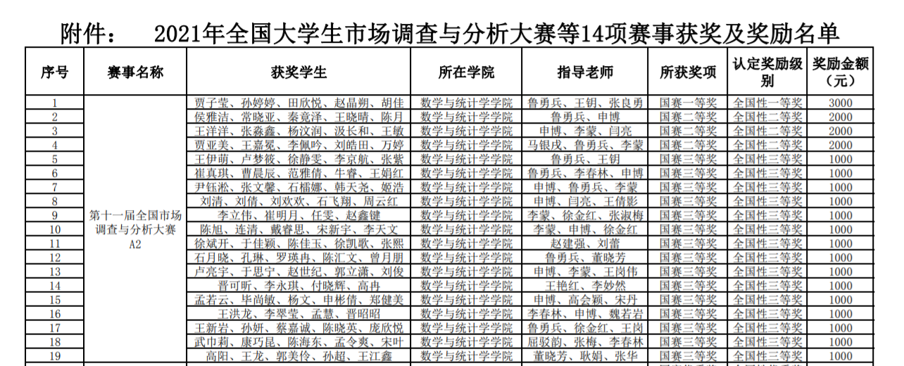近日,教务处发布了《世界杯体育官方网站关于表彰2021年全国市场调查与分析大赛等14项赛事获奖学生及指导教师的决定》,其中世界杯官网在第十一届全国市场调查与分析大赛中获得佳绩,获奖项目共计19项,其中包括国赛一等奖1项,国赛二等奖3项,国赛三等奖15项。