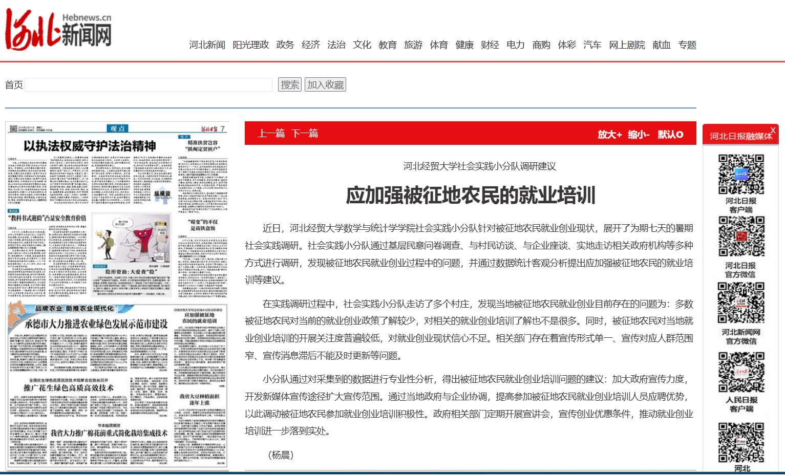 【河北日报】世界杯体育官方网站社会实践小分队调研建议:加强被征地农民的就业培训