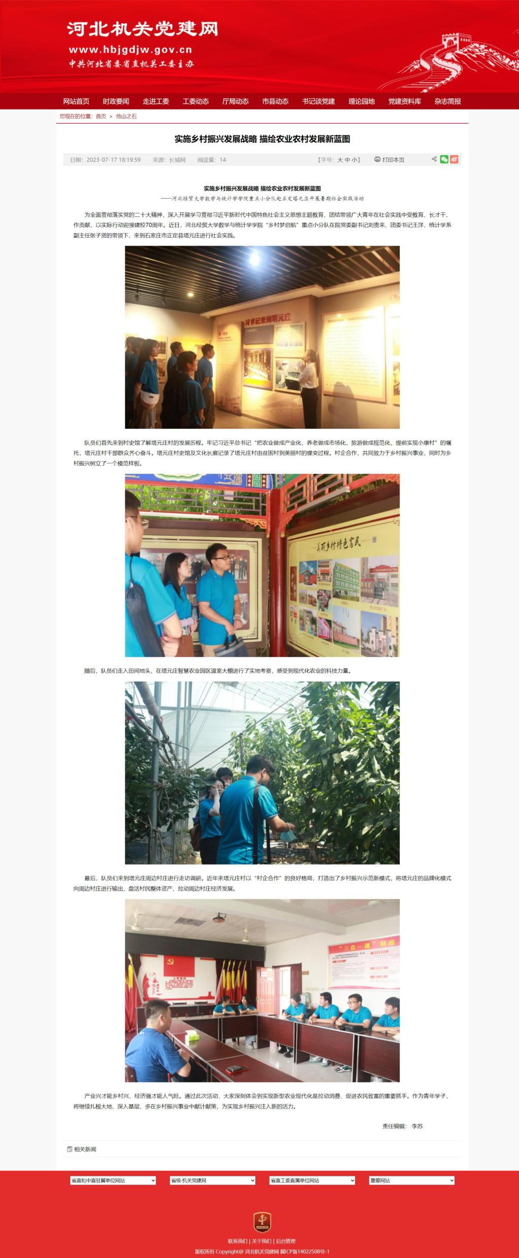 【河北机关党建网】实施乡村振兴发展战略 描绘农业农村发展新蓝图 ——世界杯体育官方网站数学与统计学学院重点小分队赴正定塔元庄开展暑期社会实践活动