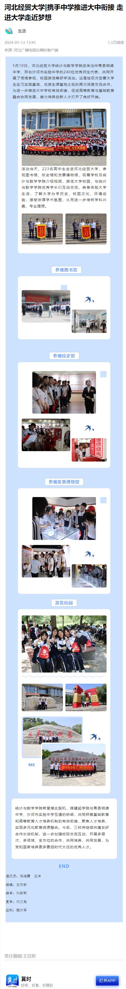 【河北广播电视台冀时客户端】世界杯体育官方网站:携手中学推进大中衔接 走进大学走近梦想