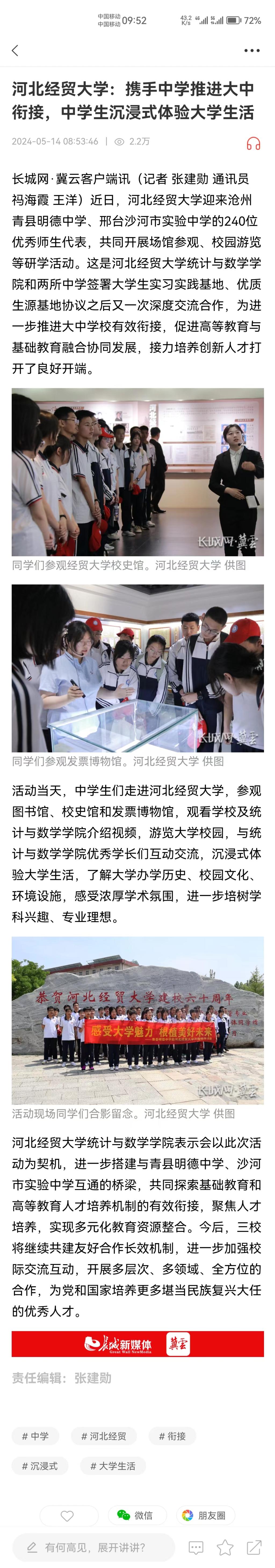 【长城网•冀云客户端】世界杯体育官方网站:携手中学推进大中衔接,中学生沉浸式体验大学生活