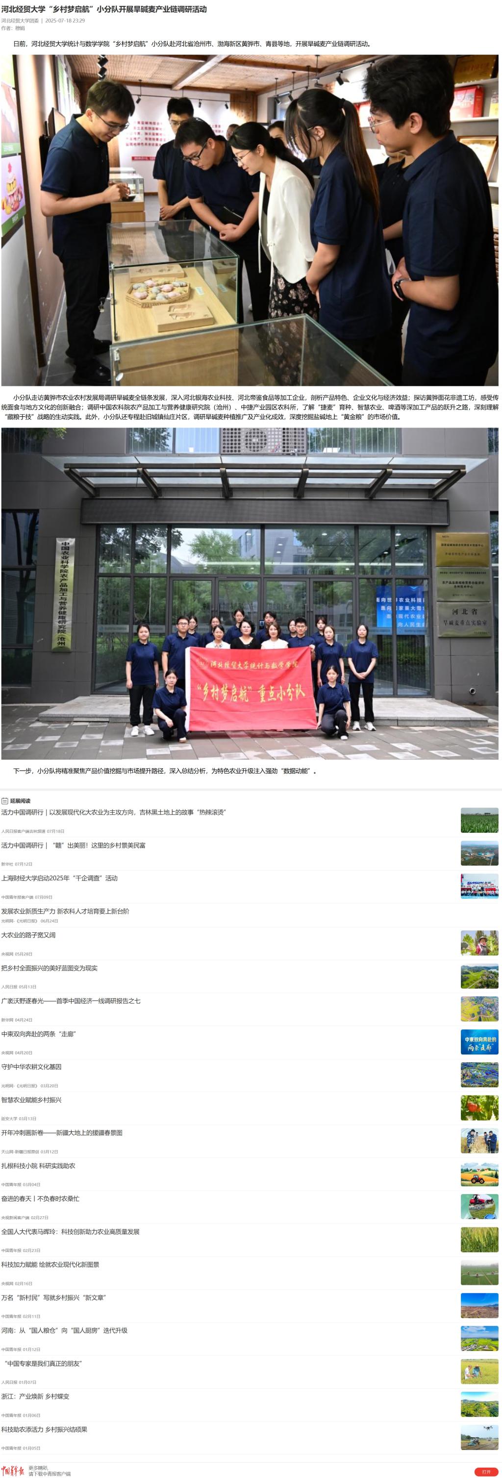 【中国青年报】世界杯体育官方网站“乡村梦启航”小分队开展旱碱麦产业链调研活动